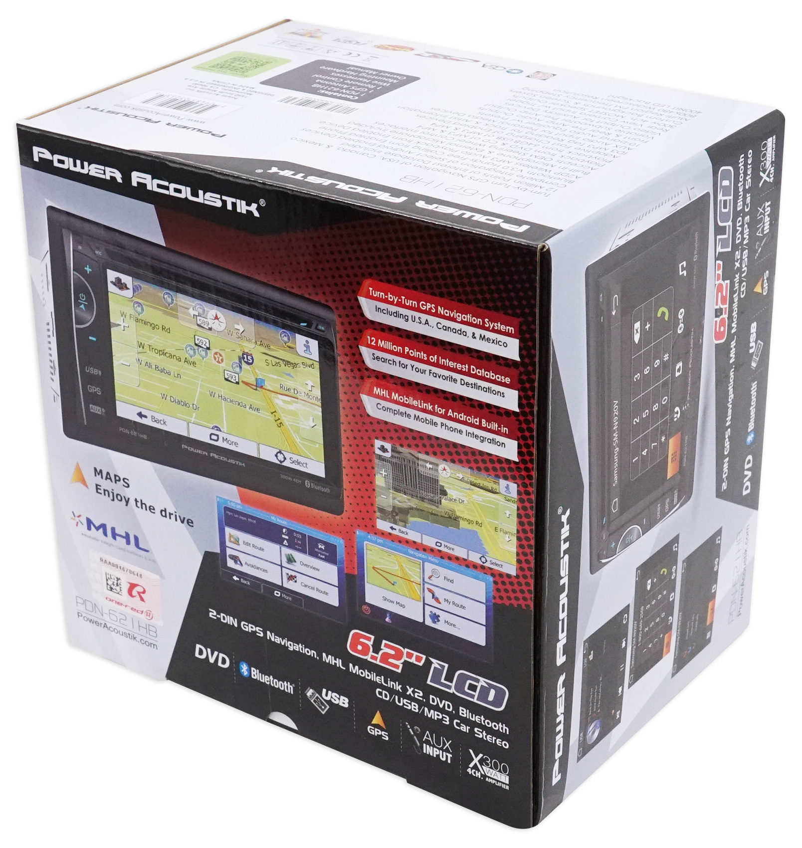 PDN-621HB features GPS turn-by turn navigation for USA. Set your destination and follow the commands by text-to-speech directions, including lane guidance. Additional features include favorites list, programmable home destination, destination fuel estimates, multi-lingual, multi-gender voices, speed limit warnings, and more!