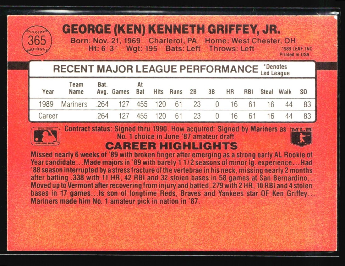 1990 Donruss Ken Griffey Jr. Seattle Mariners #365