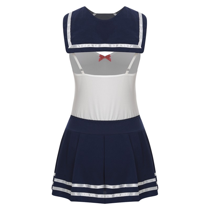 Set Include: 1Pc Bodysuit, 1Pc Mini Skating Skirt, 1Pc Collar