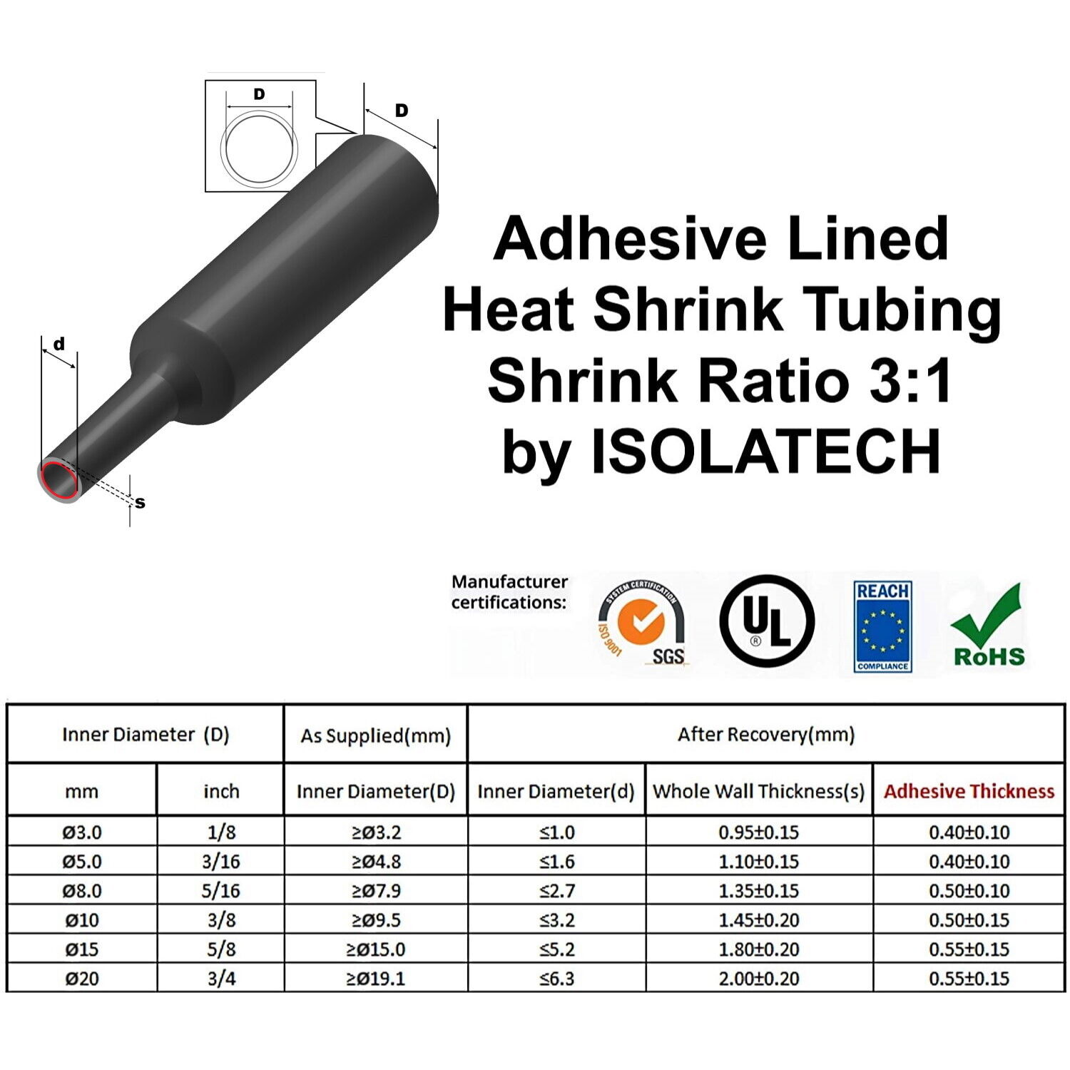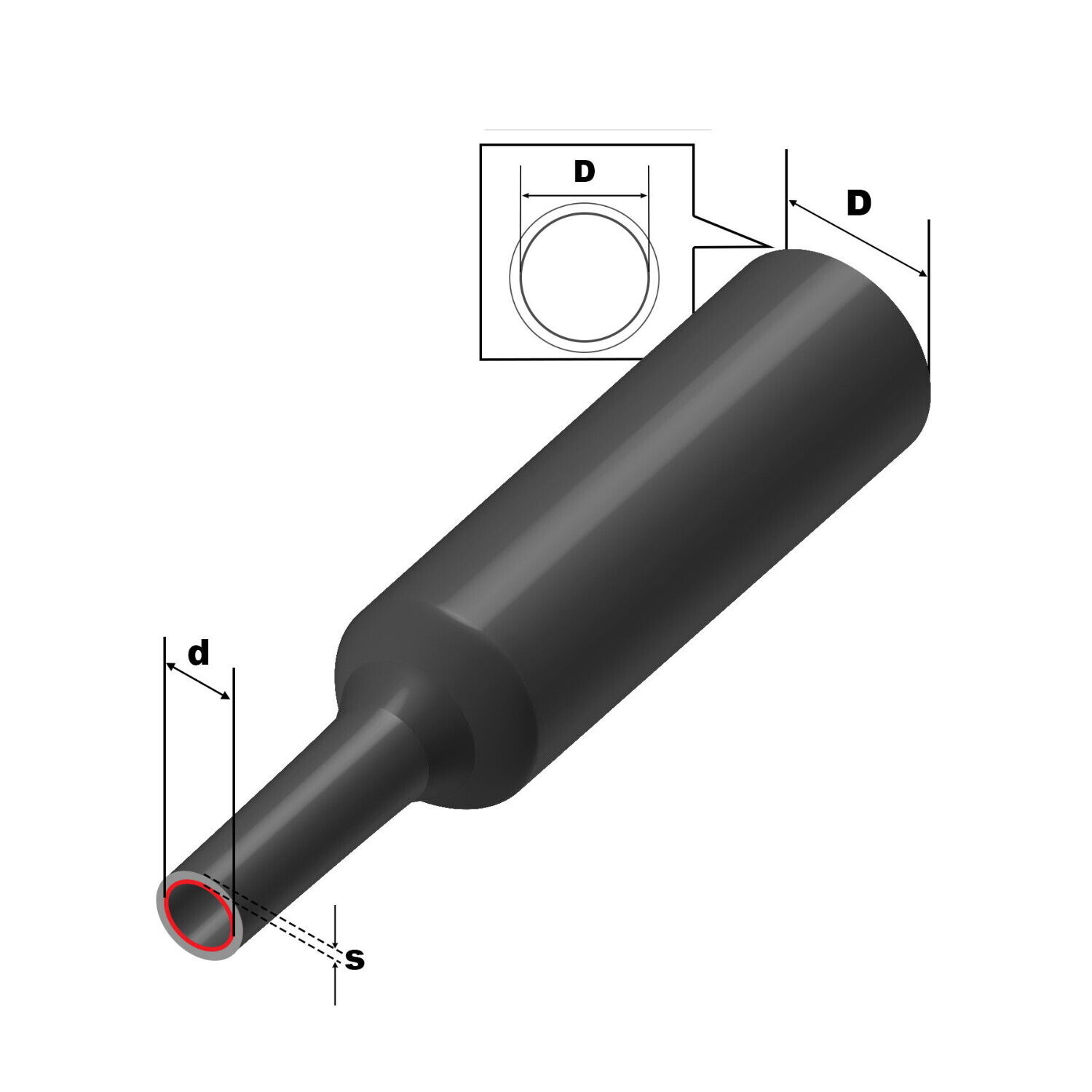 Schrumpfrate 3:1 mit einer Kleberschicht auf der Innenseite.
