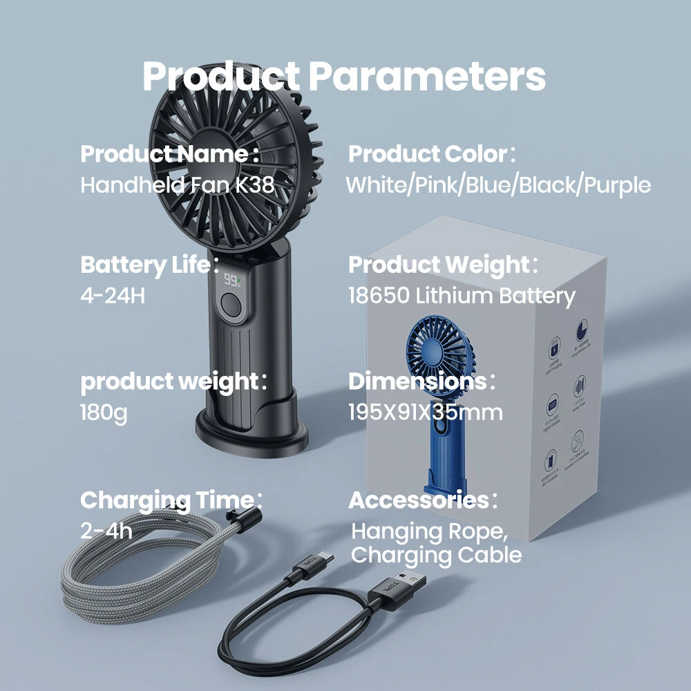 【Extended Battery Life】The WarmCo portable fan features a built-in 5000mAh high-capacity battery and energy-saving technology, providing long-lasting battery life and energy efficiency. With a runtime of 7-24 hours , you can enjoy a cool and comfortable day without worrying about running out of power. Perfect for travel, makeup, eyelashes, camping, outdoor activities, and indoor use, this mini portable fan is a must-have. 【3-in-1 Multifunctional Fan】Not only is it a handheld fan, but with a 180° foldable angle, it can also be used as a desktop fan. In addition, you can use it as a neck fan with the provided lanyard, freeing your hands and making it convenient to carry while traveling. 【Quiet Operation and 4 Adjustable Speeds】The WarmCo personal fan is equipped with a high-quality brushless motor and advanced silent motor technology, which reduces noise while maximizing airflow. With 4 adjustable speeds, you can easily switch between different levels of airflow, keeping you cool and comfortable whether you are working, sleeping, or relaxing. 【Smart Digital Display】This mini fan is equipped with a smart digital screen that displays the current wind speed and remaining battery power. This allows you to adjust the fan to your desired speed level and know when it needs to be recharged, avoiding running out of power when you are outdoors. 【Convenient Portability】The WarmCo fan is lightweight and portable, measuring only 19.5*9.1*3.5cm. It is suitable for various occasions, whether you are at home, in the office, traveling, or camping. It can easily fit into your bag or backpack, allowing you to enjoy a cool and comfortable experience wherever you go.