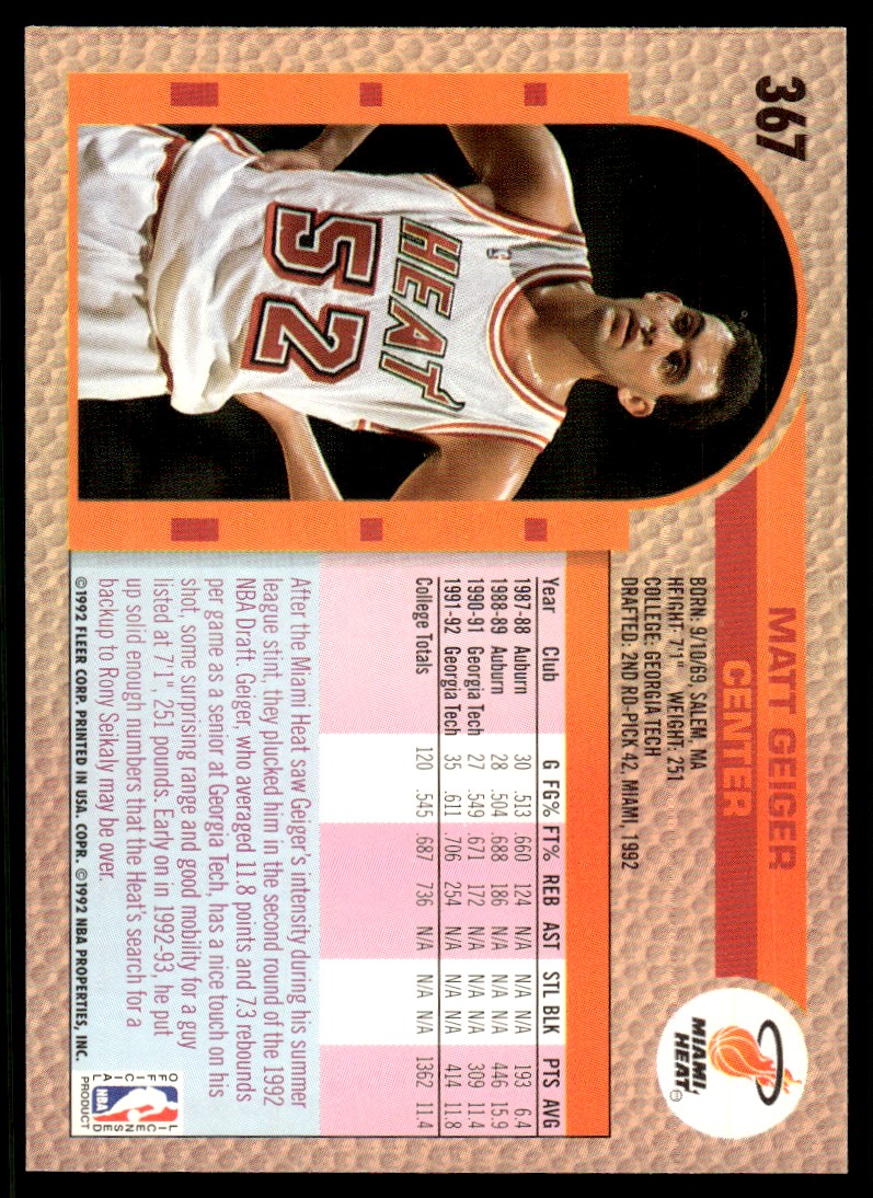| 1992-93 Fleer Matt Geiger Rookie Miami Heat #367 |