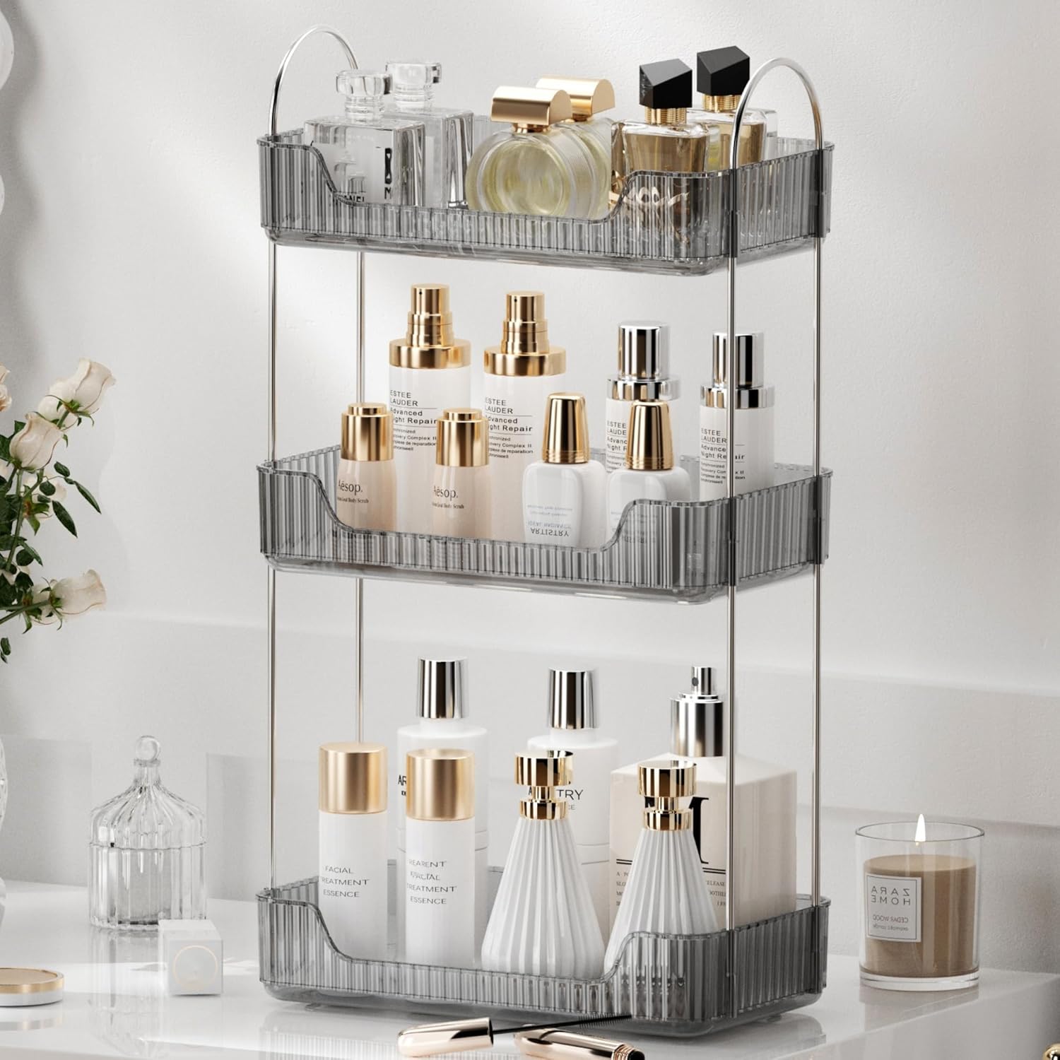 【Large Capacity Storage】Multi-layer optional bathroom organizercounter shelf, meets your different needs, from desktop flat to three-dimensional storage, put more items in the same area, save 90% desktop space, and clean and tidy
