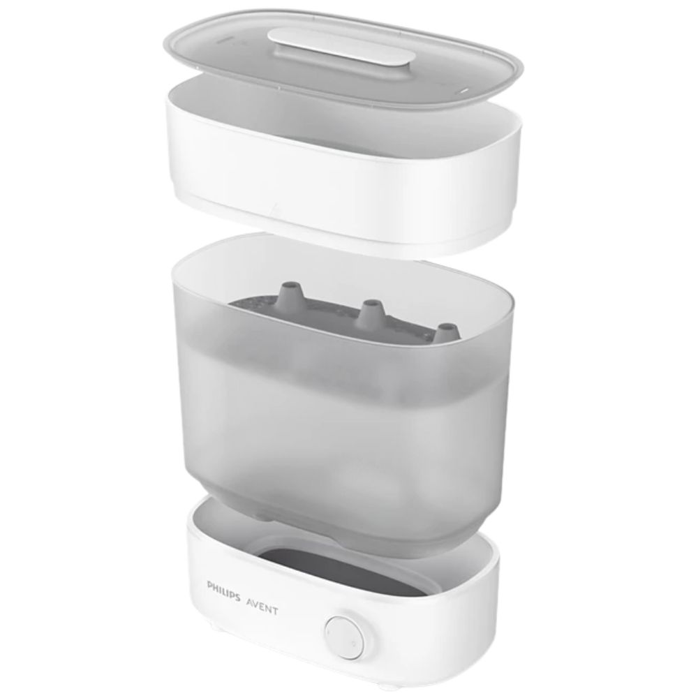 Philips Avent parowy sterylizator Avancé à dispositif fiable qui offre le plus haut niveau d'hygiène pour les accessoires de votre enfant. Il n'utilise que de la vapeur pure, éliminant 99,9 % des bactéries nocives sans utiliser de produits chimiques.
