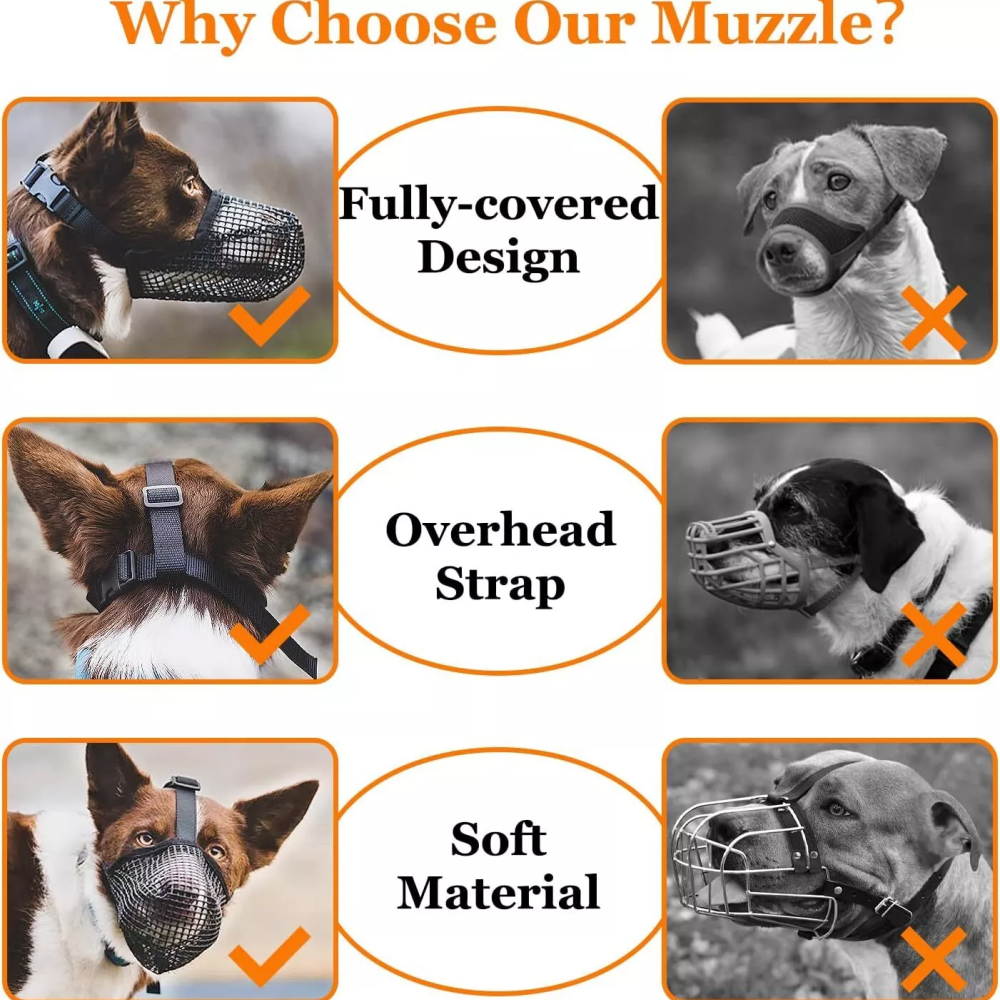 ✔ Safe & Comfortable: Soft yet sturdy mesh design allows panting and drinking while preventing barking, biting, scavenging, and unwanted behaviors.