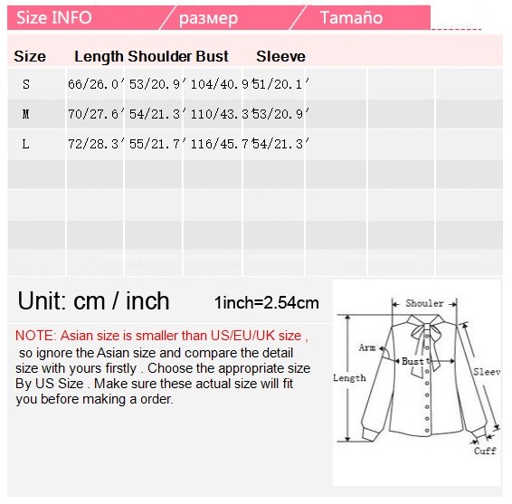 2. The label size is Asian size, the parameters of each size are measured by placing the product on a flat table to measure its outer size. Please measure yourself before ordering, if you are not sure, please contact us.