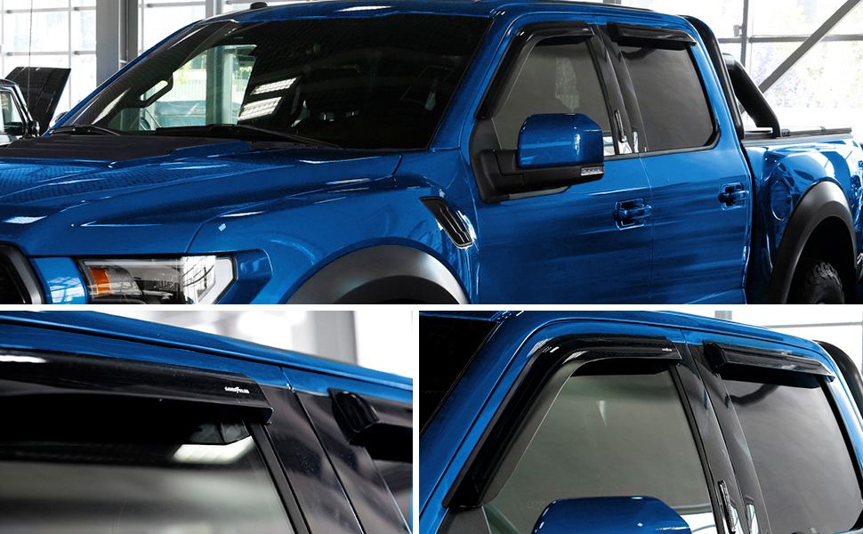 GOODYEAR SIDE WINDOW DEFLECTORS the famous high quality tape-on rain guards that let you drive with your window down in rain, snow, ice and other inclement conditions.