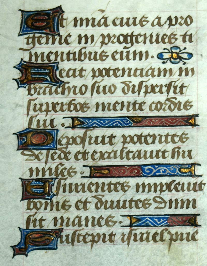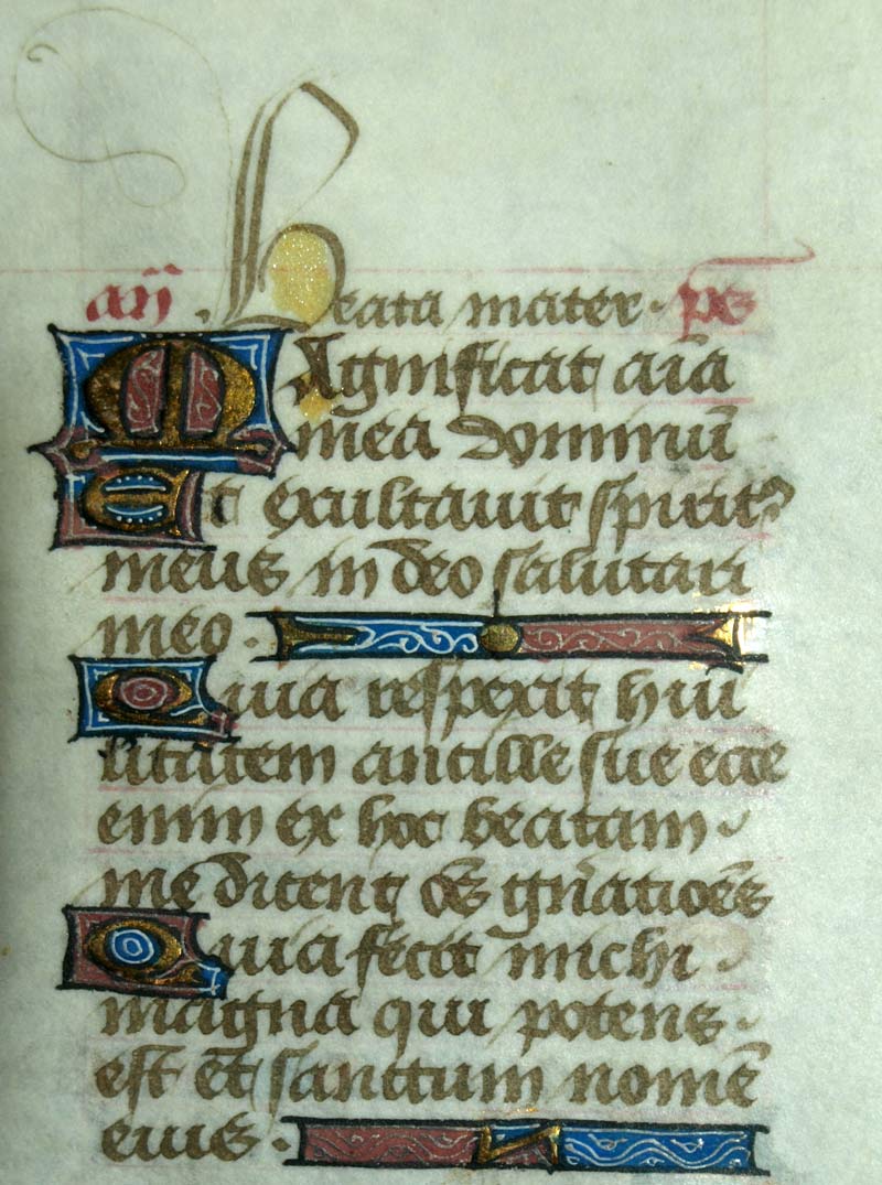 Très belles écriture manuscrite, dentelle de rinceaux en marge décorées et des lettrines aux encres de couleur et à l’or