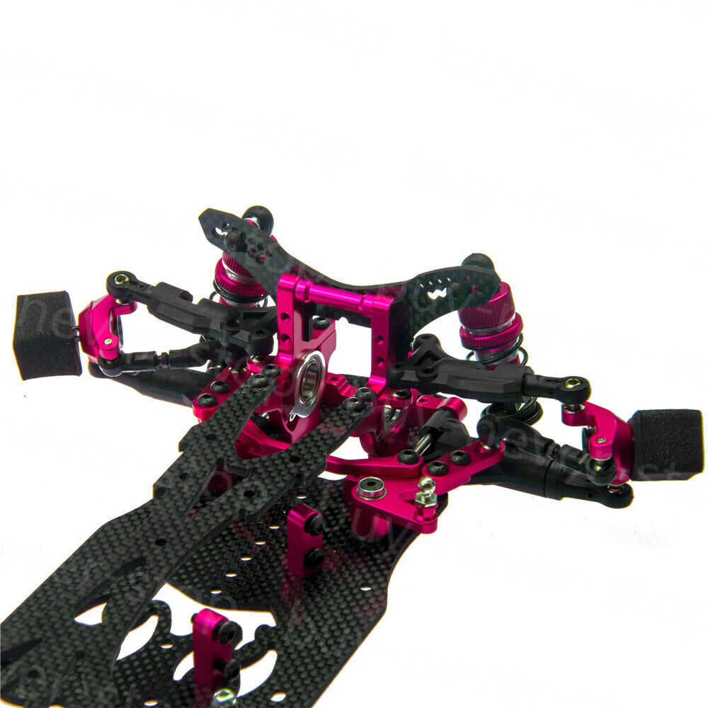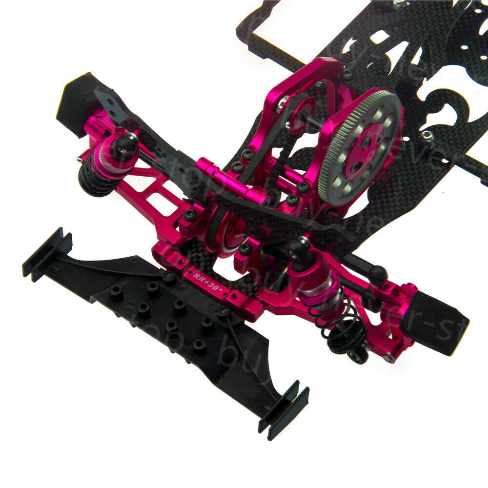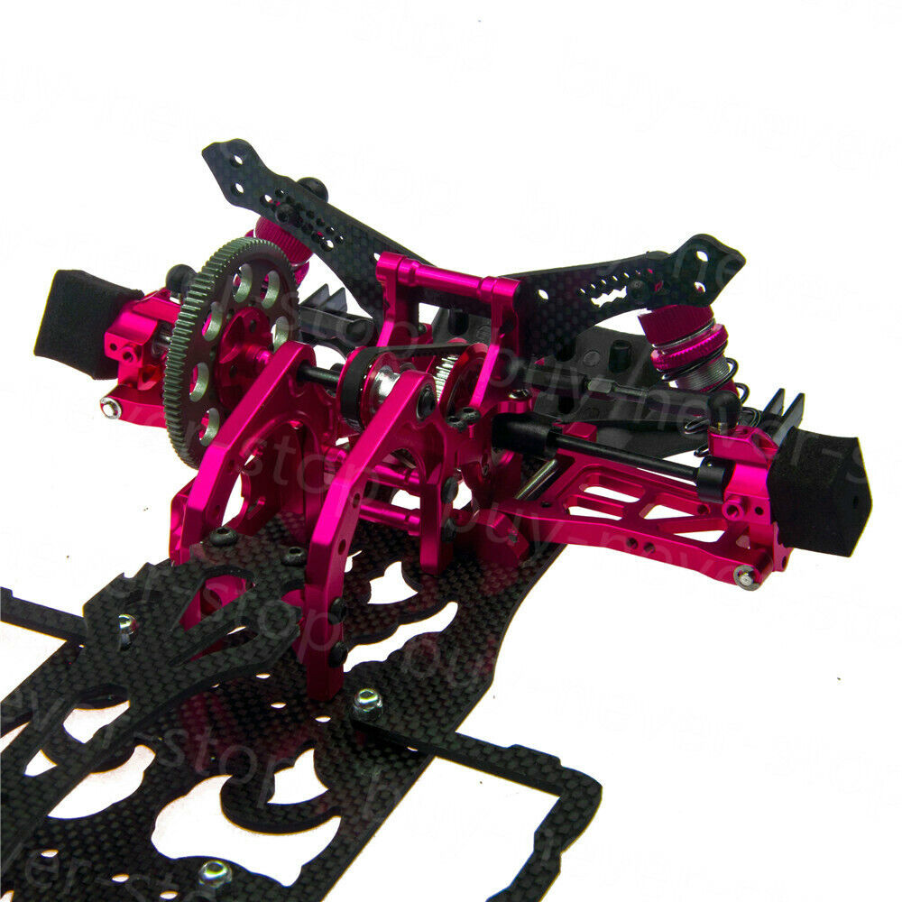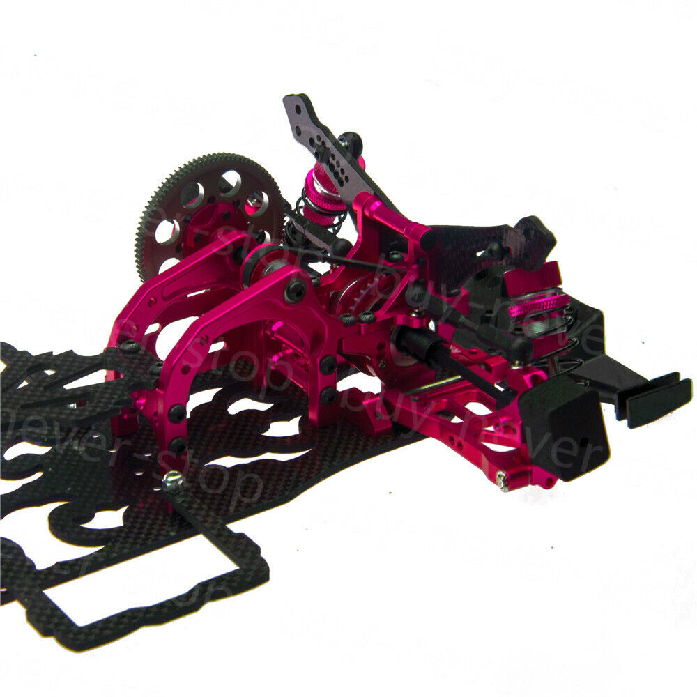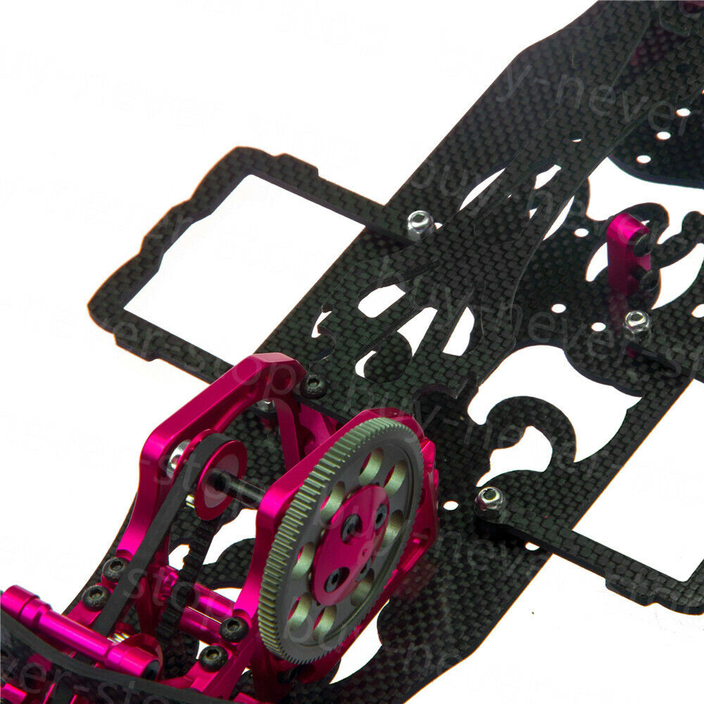 The carbon fiber chassis is 2.5mm thick and trimmed in the right place to reduce the weight and increase the flexibility of the car. The top deck plate is 2.0mm thick that fits perfectly together with the chassis to make a good match. Overall reducing 8 grams of weight while increasing the overall performance of the car can make a whole new driving experience for Sakura D4 owners.