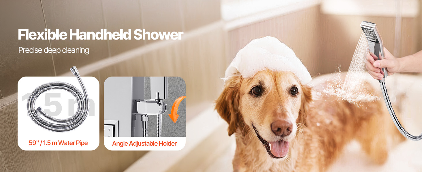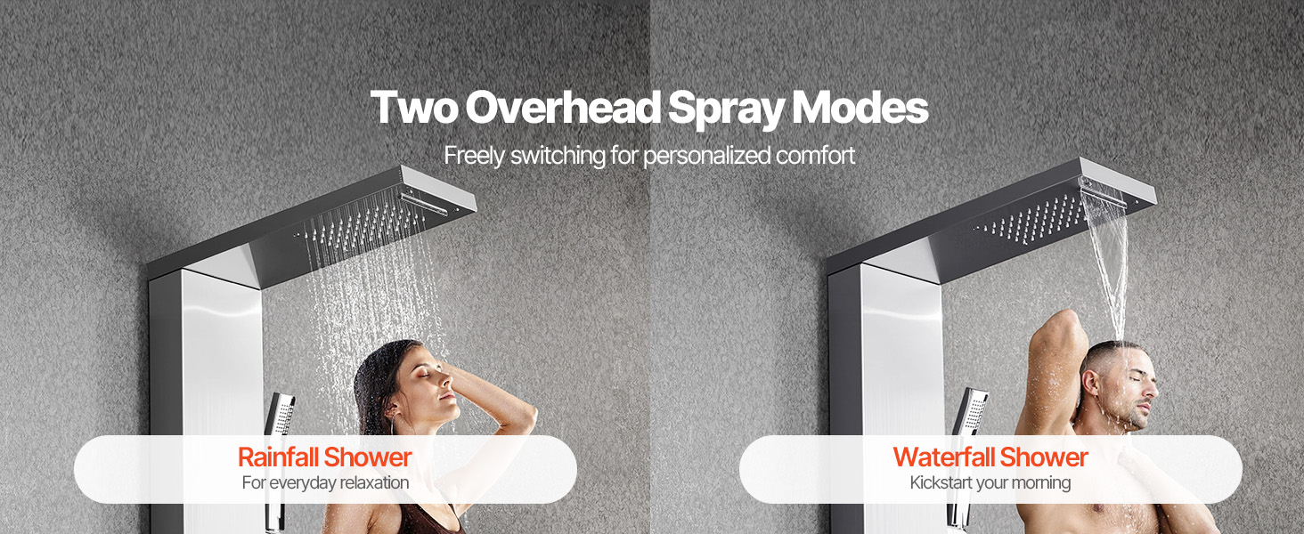 - Soffione doccia flessibile: il soffione doccia superiore offre la modalità pioggia o cascata e consente di scegliere tra un getto d'acqua rinfrescante o più intenso. La doccetta con tubo flessibile lungo 59 pollici (1345 mm)