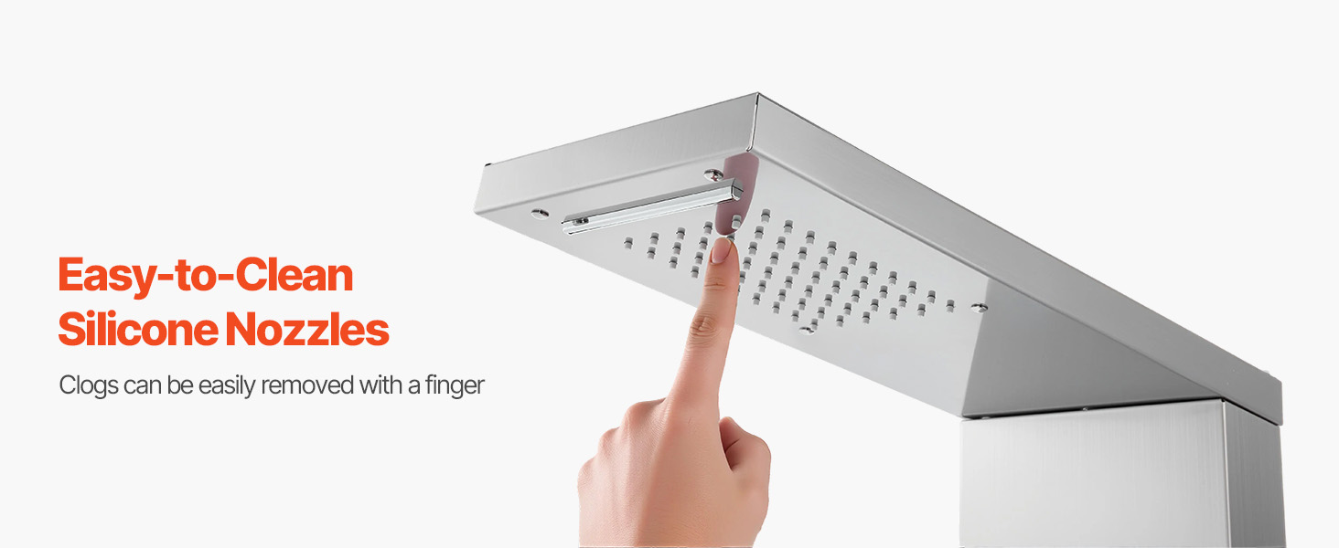 - Flusso d'acqua regolare e stabile: la struttura unica della valvola di miscelazione in ottone garantisce un'elevata resistenza alla pressione dell'acqua ed evita perdite o ruggine. Gli ugelli in silicone della colonna doccia in acciaio inox sono facili da pulire