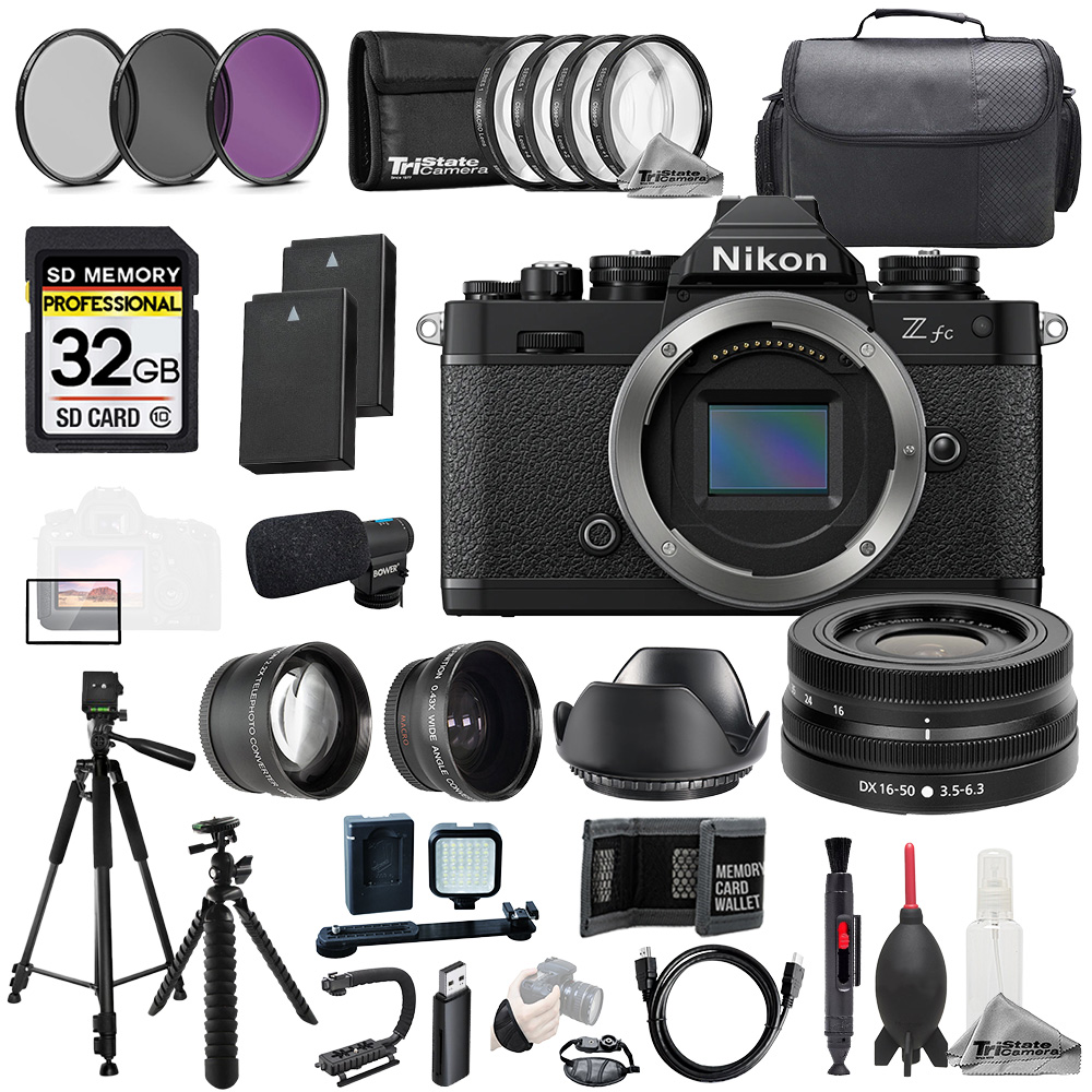 Nikon Zfc + Z DX 16-50mm f/3.5-6.3 VR Lens Black + Mic+32GB +9 PC Filtr-MEGA Kit