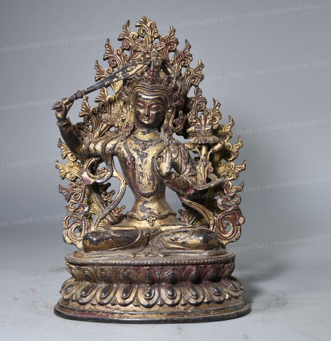 Rare Tibetan Buddhist Bronze - 6.3" Sword-Wielding Manjushri 1.65kg