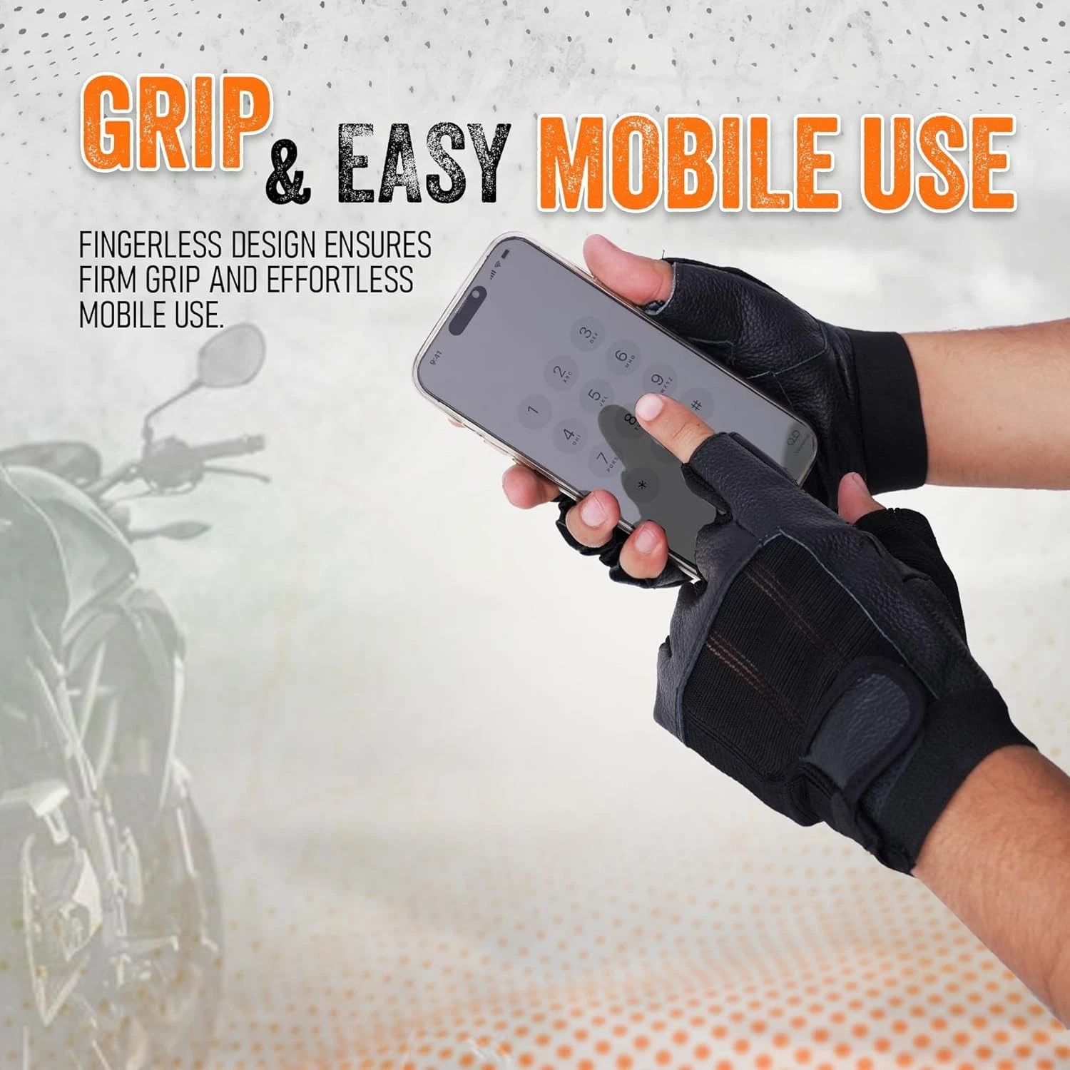 - All-day Comfort: Renegade Baltimore black fingerless gloves men Come with Gel Palm for long-term comfort, Pull tabs that are for additional Grip and Easy Removal, and an adjustable wrist strap is also added in the half finger gloves men leather to ensure the best Fit.