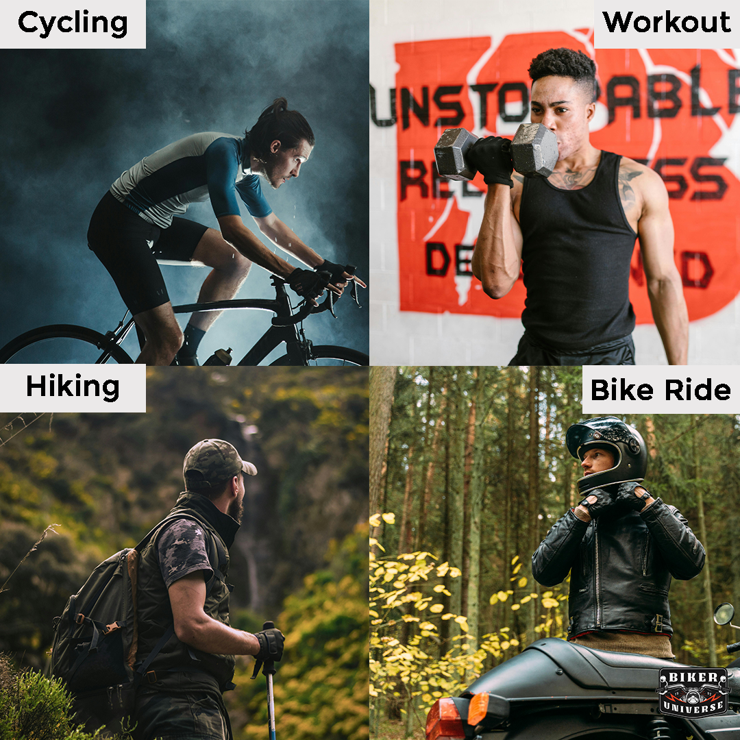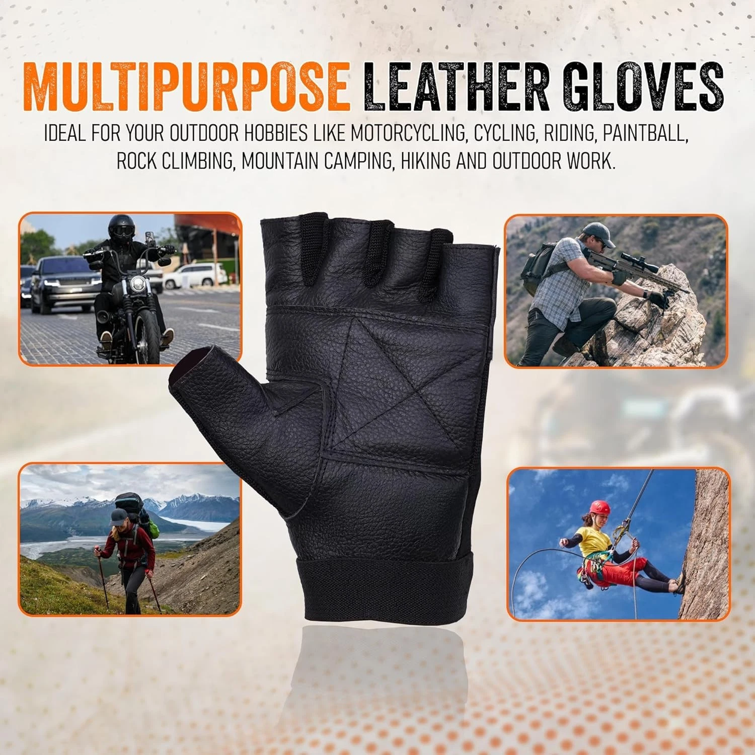 - Multipurpose Leather Gloves: These leather fingerless gloves will keep your hands safe in every situation and are ideal for Your Outdoor hobbies like Motorcycling, Cycling, Riding, Paintball, Rock Climbing, Mountain Camping, Hiking, and Outdoor Work.