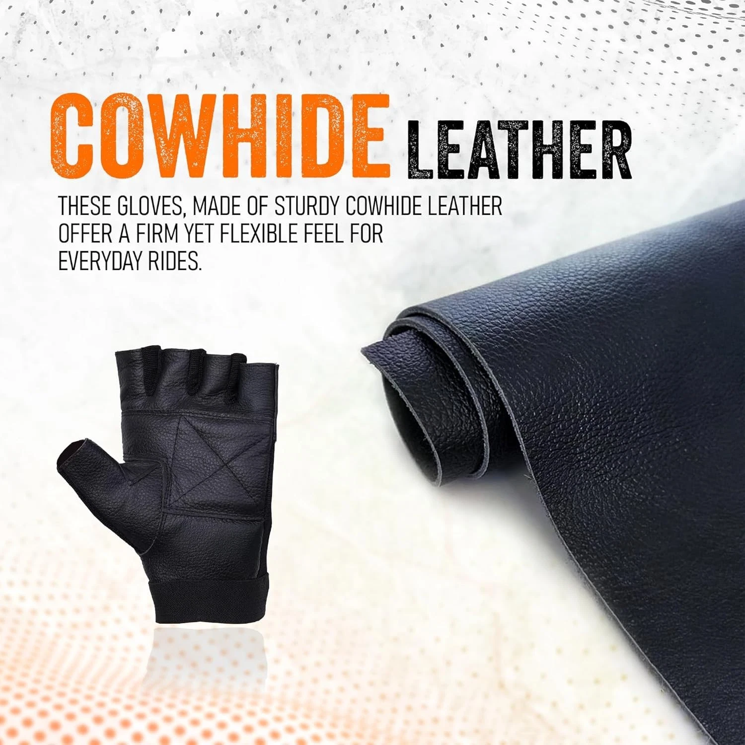 - Premium Leather: Renegade Baltimore Fingerless Motorcycle Gloves are made of excellent Goatskin leather that provides natural protection and will not tear or crack when exposed to conditions like sunlight, heat, or moisture.
