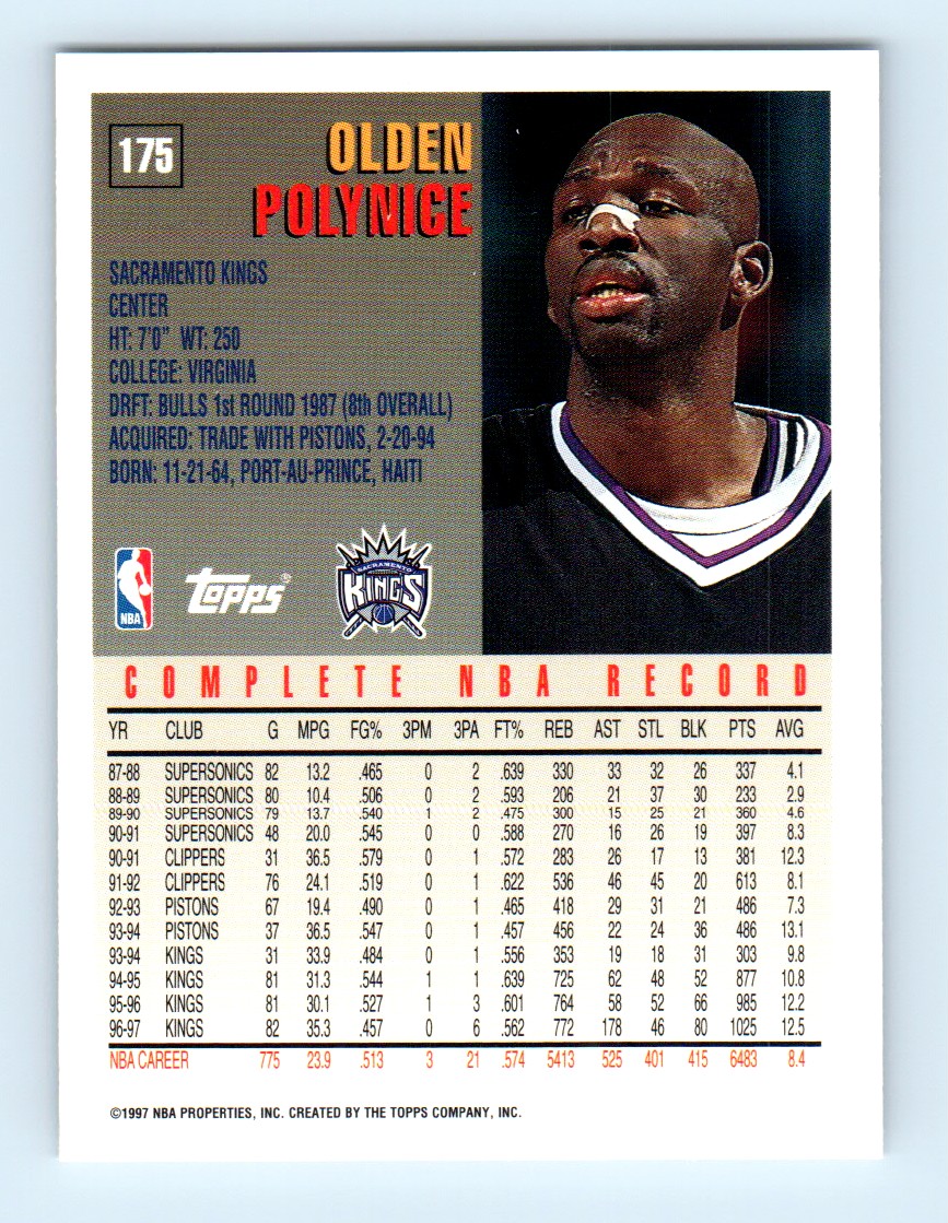 | 1997-98 Topps Olden Polynice Sacramento Kings #175 |
