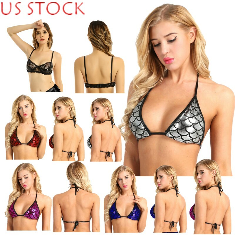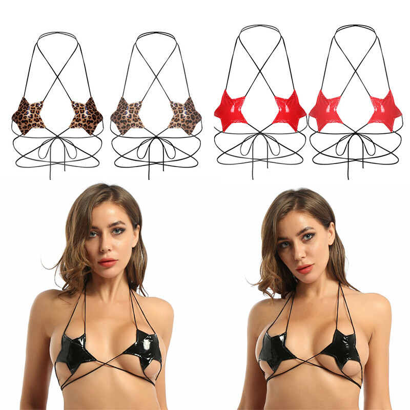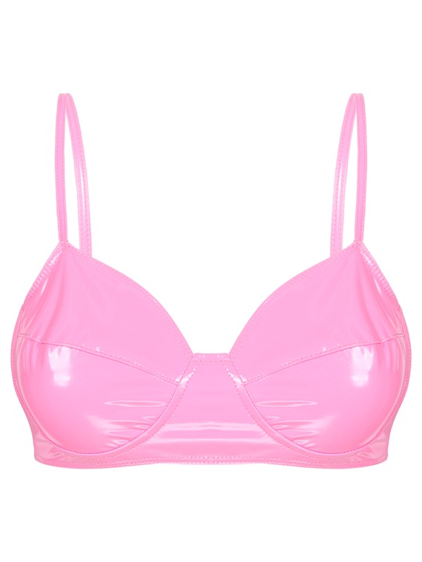 Women’s Lingerie Wet Look Patent Leather Bra with Briefs for Club.