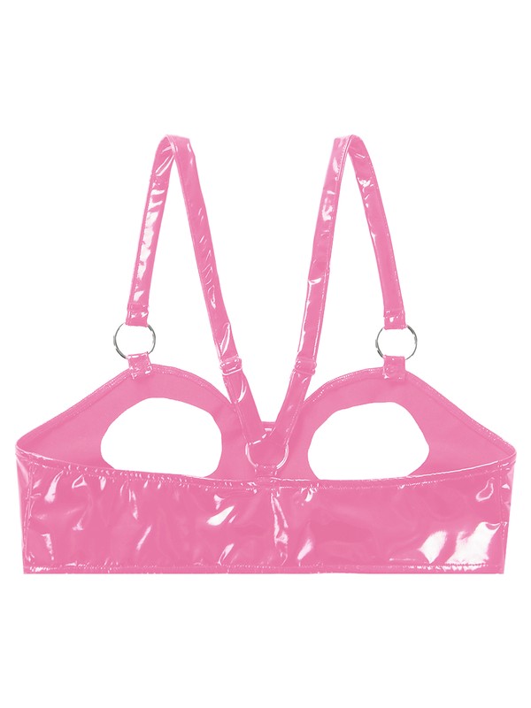 Womens Wet Look Patent Leather Open Cup Bra Tops O Ring Lingerie Underwear.