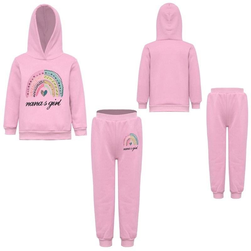 Long sleeve hoodie sweatshirt and sweatpant set for girls, inner fleece keeps girl warm and cozy in cold weather.