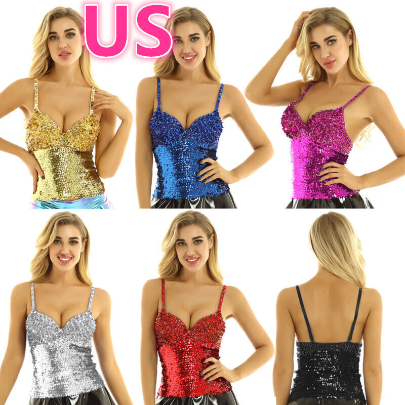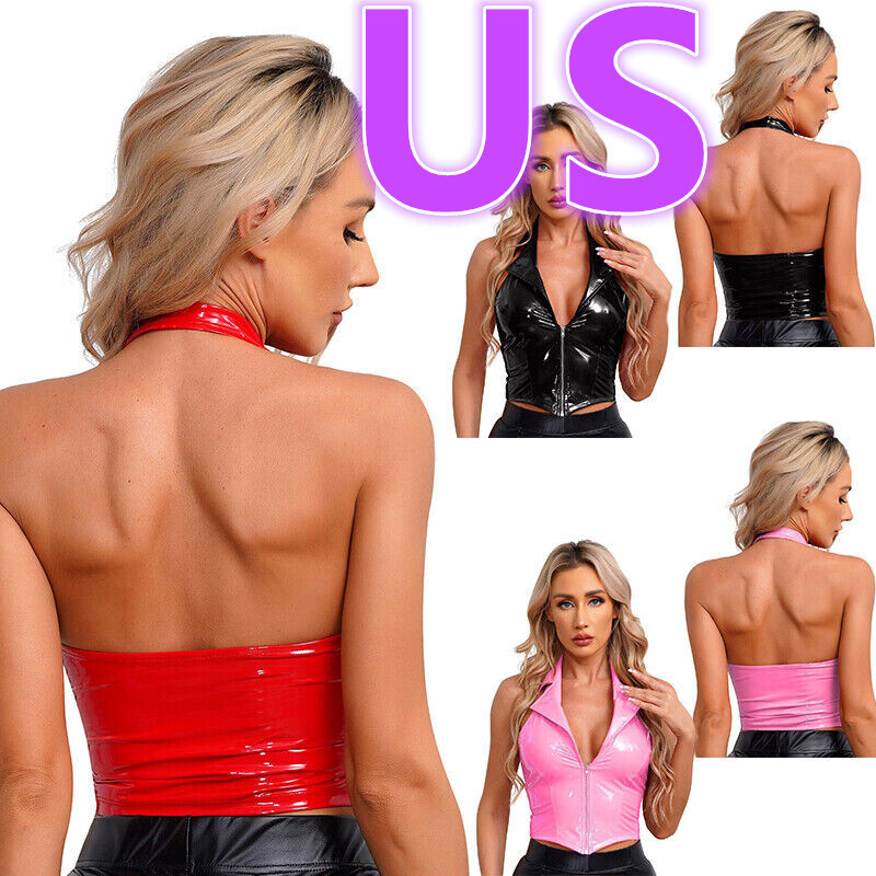 Womens Glossy U Neck Tank Tops Solid Color Sleeveless Crop Top Vest.