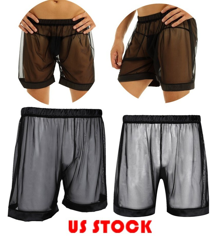 Elastic waistband, square legs, see-through mesh design.