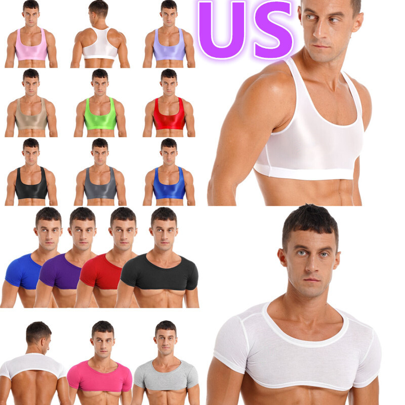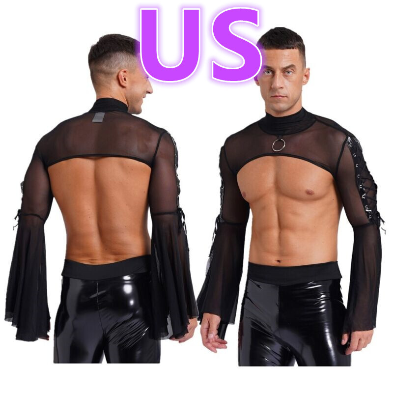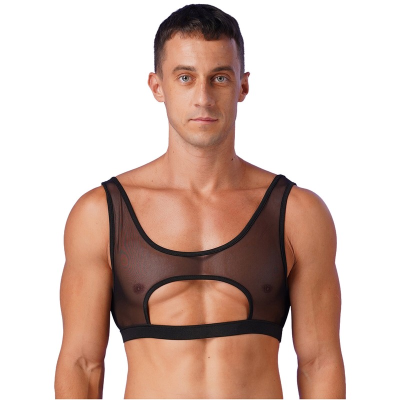 See-through mesh cutout crop top u neck sleeveless vest lingerie tank tops for men.