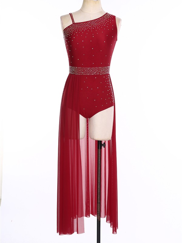 Women’s sleeveless dance dress is decorated with sparkly rhinestones to make you stand out from the show.