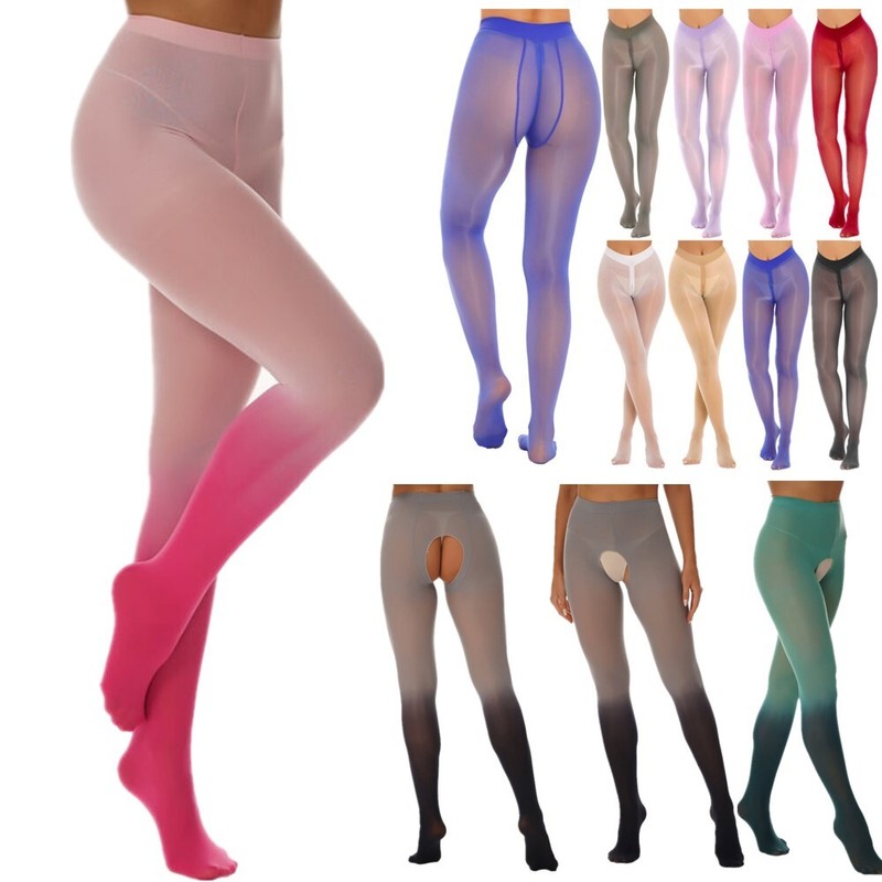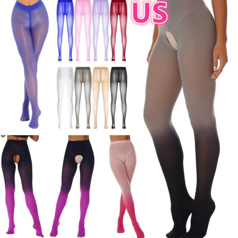 Womens See-through High Waist Tights Leggings Glossy Stretchy Sheer Pantyhose.