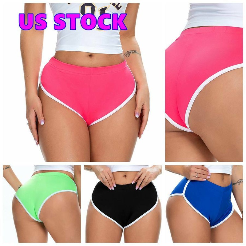 Stretchy high-waisted style, boy-cut design. Solid color, slim fit, nice seam.