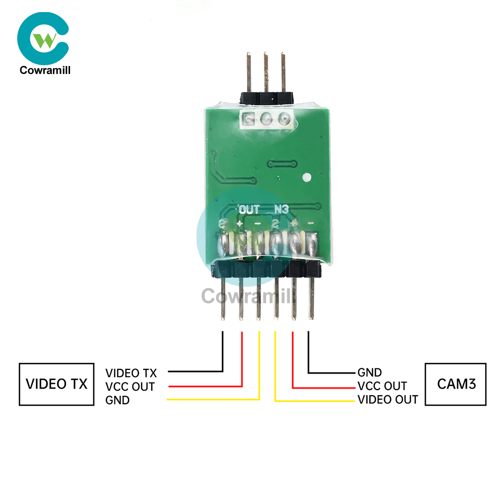 5、OUT:Video Out, connect to the AV IN port of OSD or transmitter. “S” line is the signal output line, “+” line for all video 12V, “-” line for all video GND.