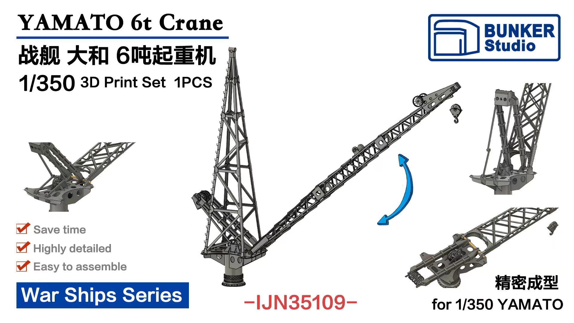 BUNKER IJN35109 1/350 War Ships Series YAMATO 6t Crane 3D Print Set