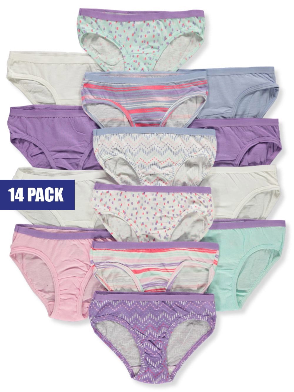 Fruit Of The Loom Girls' 14-Pack Hipsters Underwear - Purple/Multi, 14 (Big