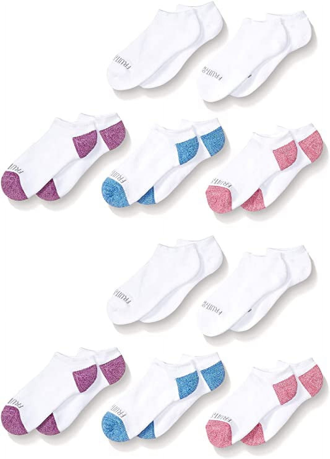 Fruit of the Loom girls Everyday Essential Soft Cushion Casual Sock, White/Pink, Medium US