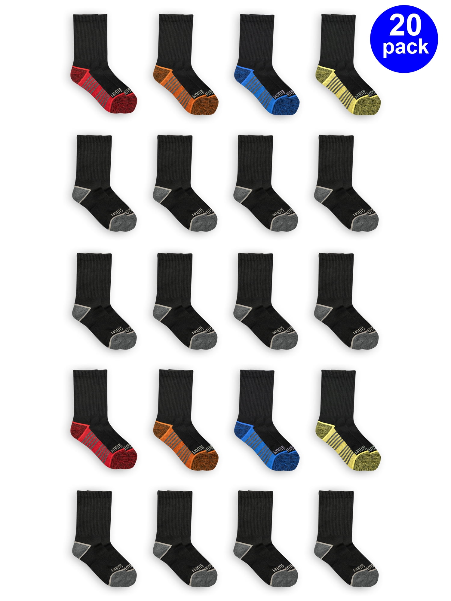 Fruit of the Loom Boys Cushioned Crew Socks, 20 Pack
