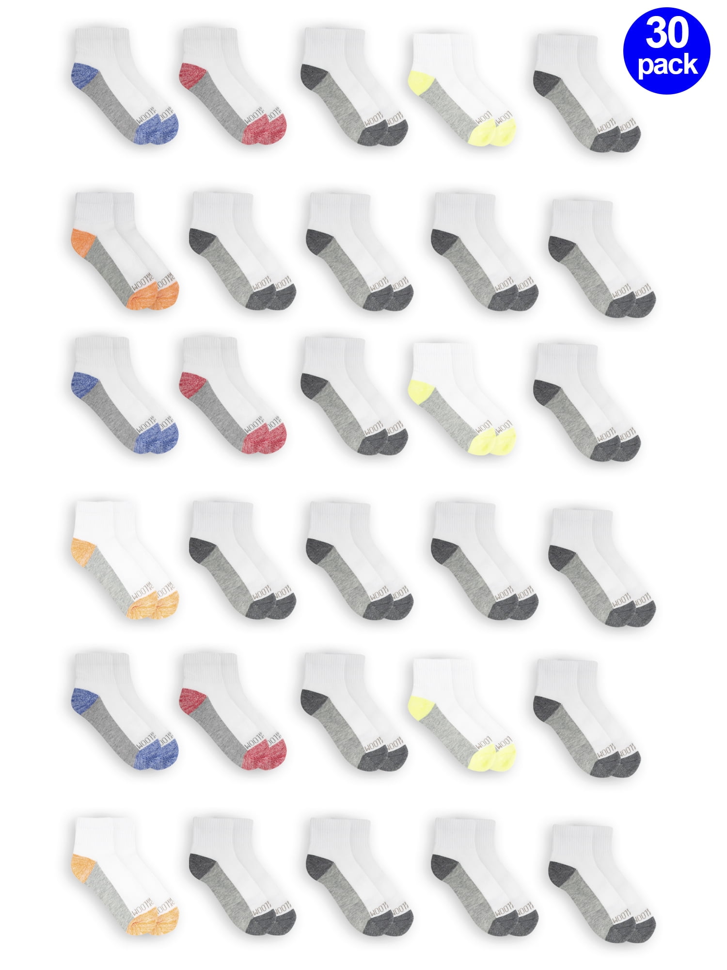 Fruit of the Loom Boys Socks, 30 Pack Ankle Durable Cushion (Little Boys & Big Boys)