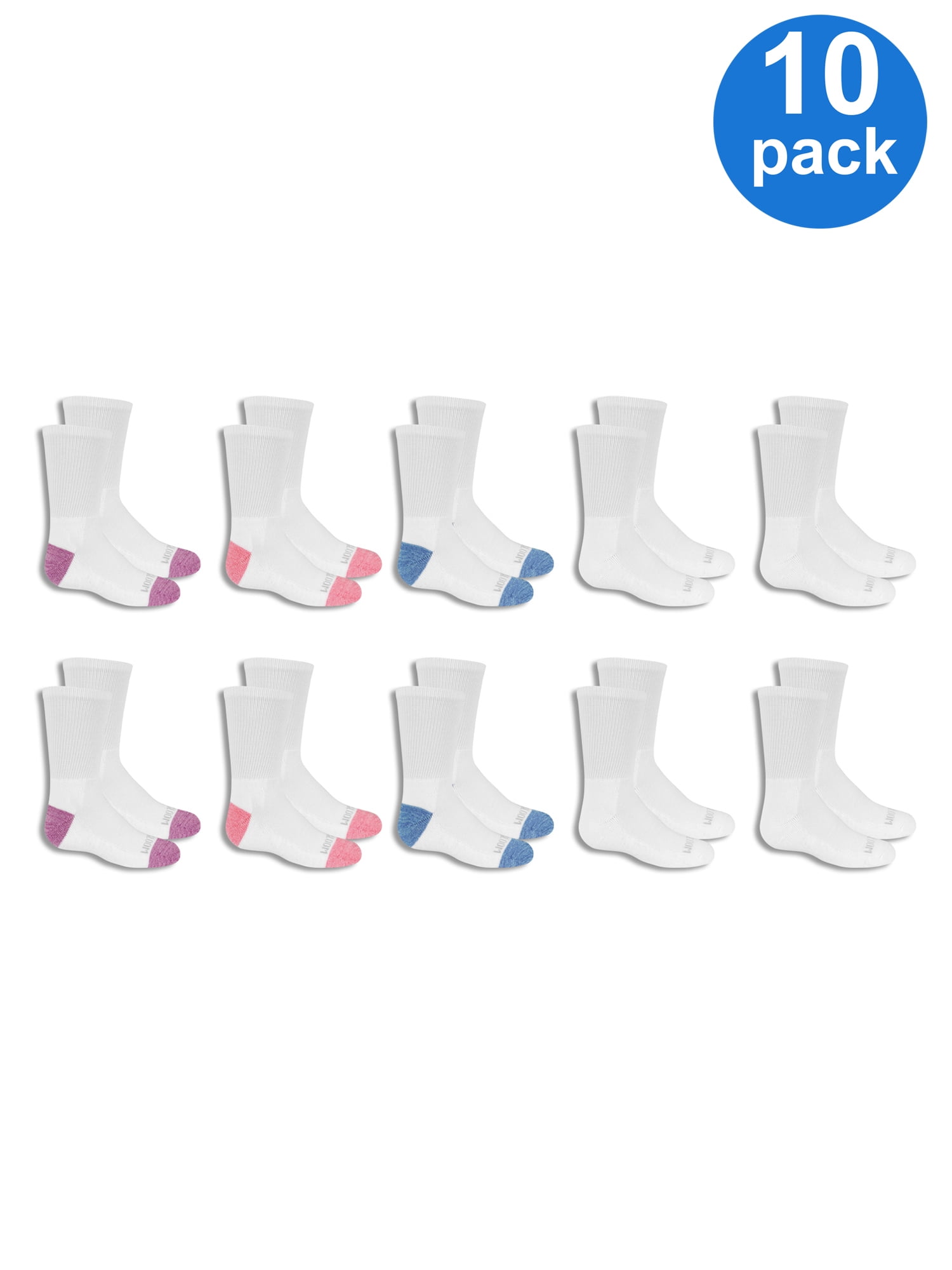 Fruit of the Loom Girls Crew Socks 10-Pack, Sizes S-L