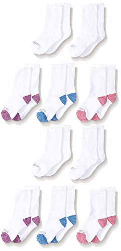 Fruit of the Loom girls 10-pair Everyday Soft Crew Casual Sock, White, 3-5T US