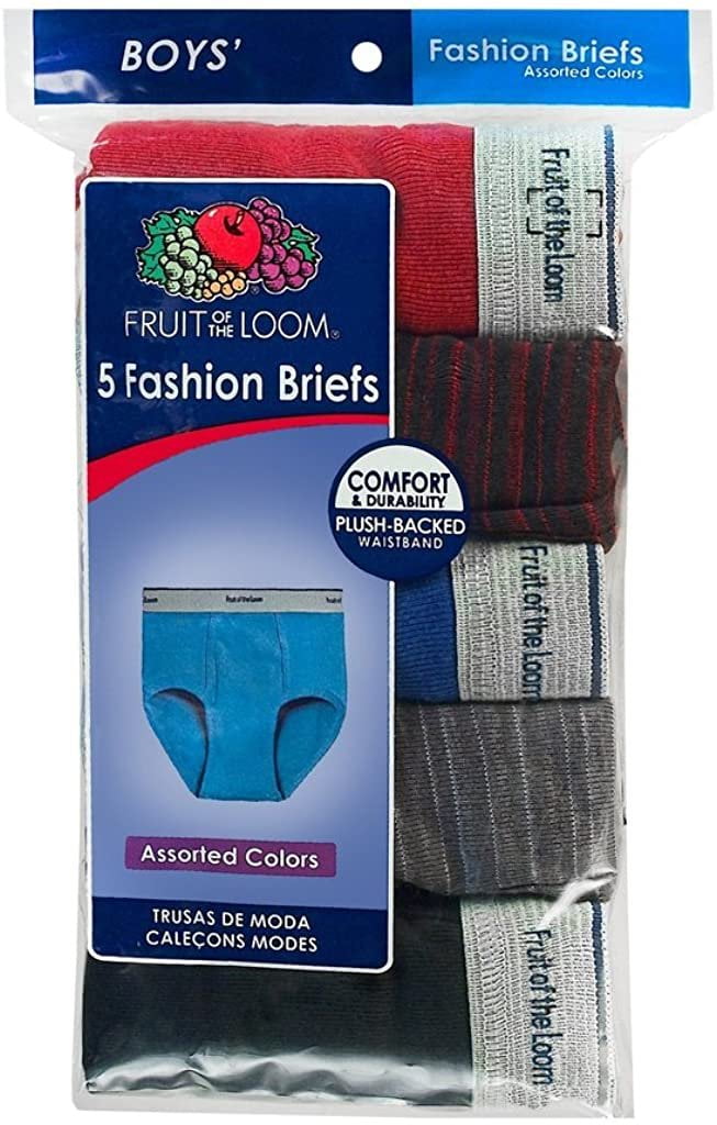 Fruit of the Loom 10-Pack Boys Assorted 100% Cotton Briefs Kids Underwear, Large