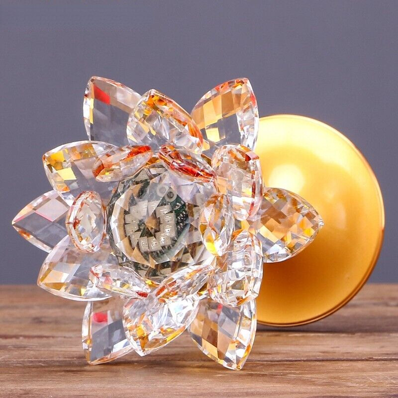 A Pair 6.6" Colorful LED Lotus Lamp Crystal Shrine Lights Worship Buddha