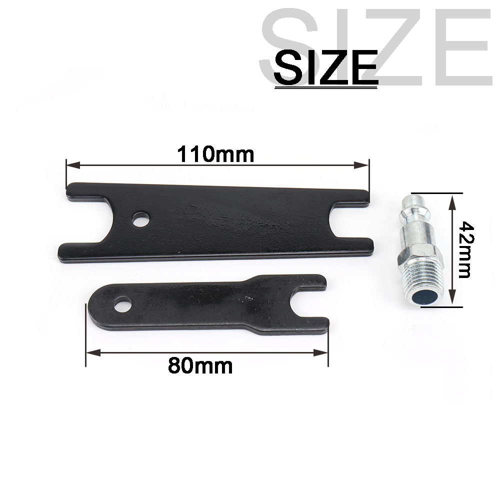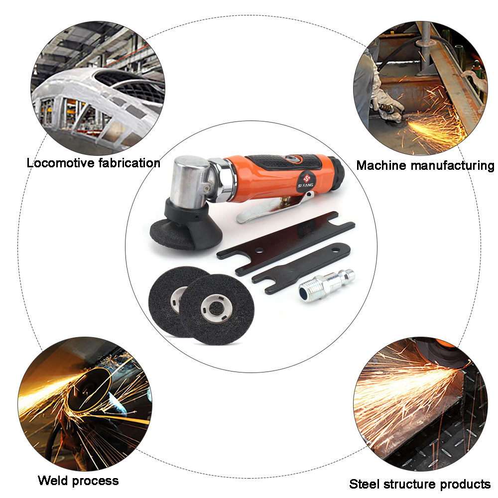pneumatic angle grinder (including grinding wheel), special wrench x2 for disassembling the grinding disc, interface