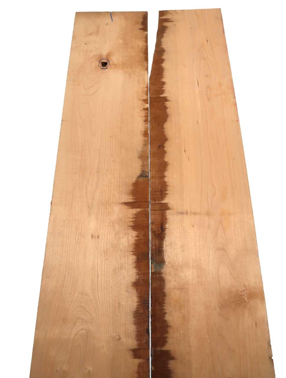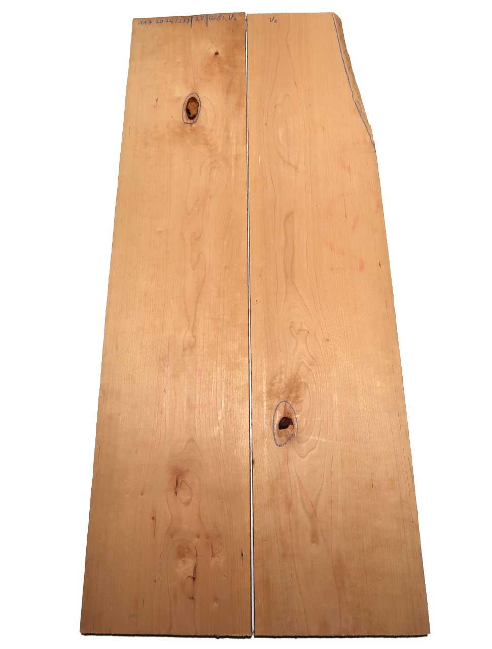 Hierbei handelt es sich um teilweise rustikales amerikanisches Kirschbaum Holz. Die Farbe des Kernholzes ist orangerötlich bis rötlichbraun, matt glänzend und hat als typisches Merkmal Gum-Einschlüsse (dunklen Stellen im Holz) die mal mehr mal weniger verteilt vorkommen. Dies ist kein Fehler sondern sind ein Kennzeichen für diesen amerikanischen Kirschbaum.