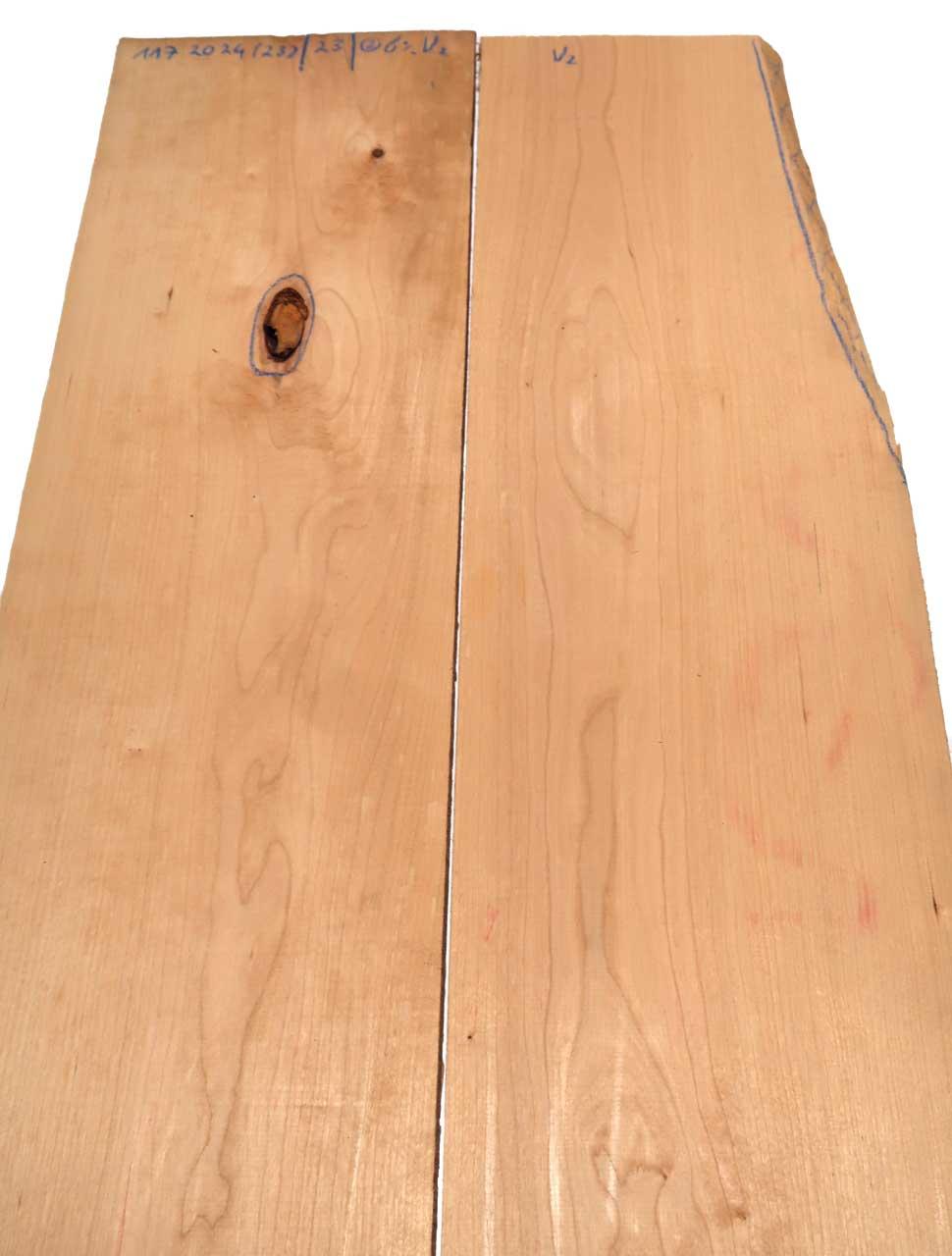 Das Kirschholz ist nur im groben Rohzuschnitt zu erhalten, Enden nur grob mit Kreissäge gekappt, Oberfläche vom Kirschbaum kann frisch nach dem Hobeln nachgedunkelt und so evt teilweise fleckig wirken - dies kann man ganz einfach wieder abschleifen oder weiter hobeln - wird dann wieder heller, mögliche grüne/blaue Farbe an den Enden nur oberflächlich - kann abgehobelt werden! Maße werden mit minimalen und maximalen Werten angegeben!