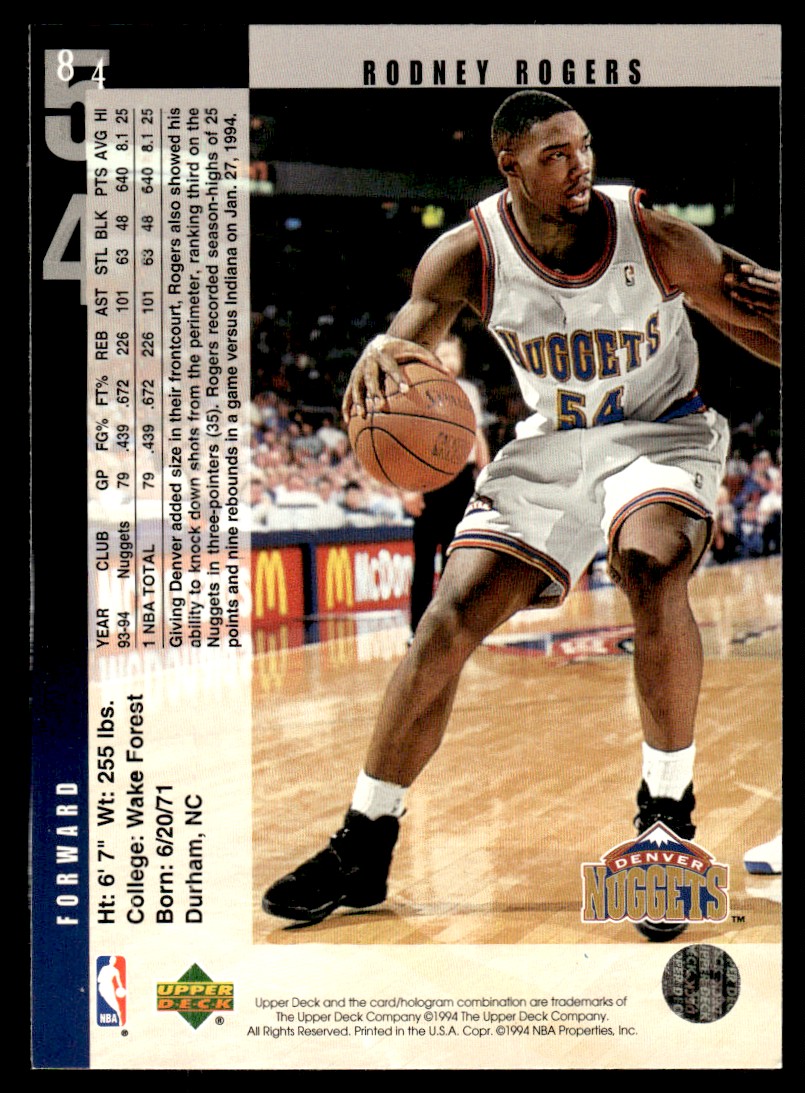| 1994-95 Upper Deck Rodney Rogers Wake Forest Demon Deacons/Denver Nuggets #84 |