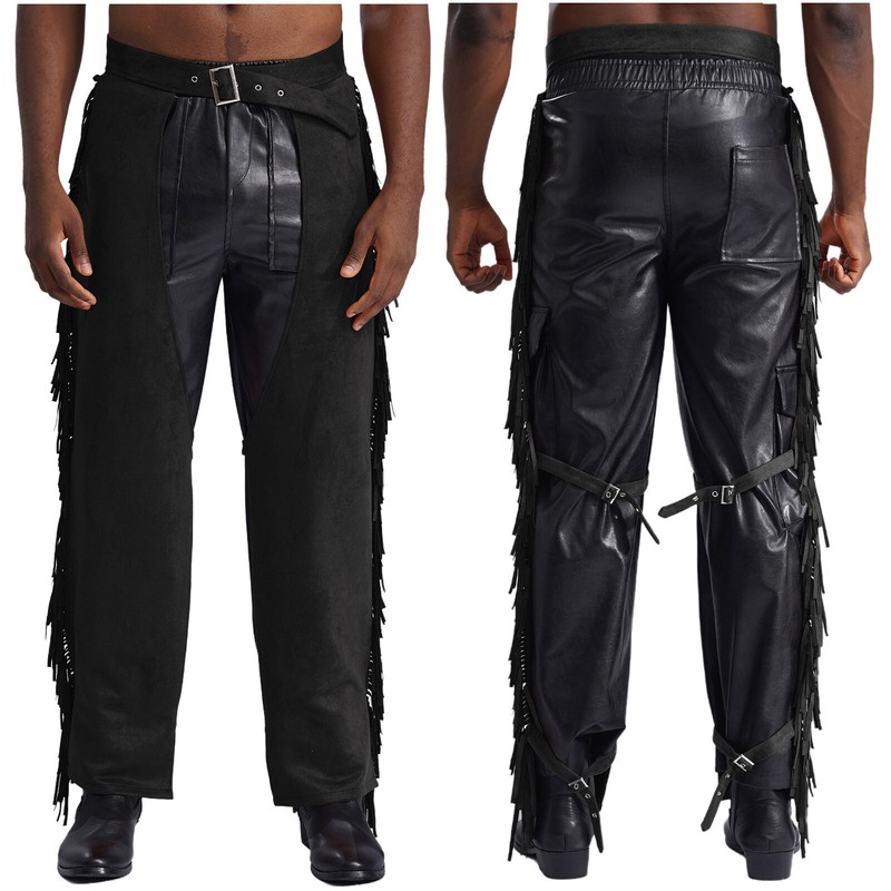 Designed with open crotch pants fringe at two sides, which will swing with footstep, look very cool.