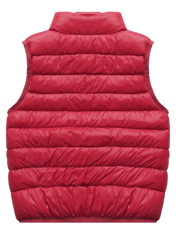 Kids padded vest with stand collar provides added warmth and protection for the neck. Zipper closure allows for easy wearing.