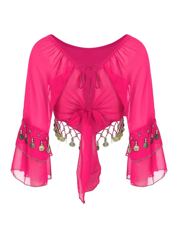 Women’s dance top with flare sleeve and irregular hem perfectly show your charm and the beauty of dance.