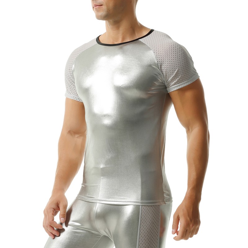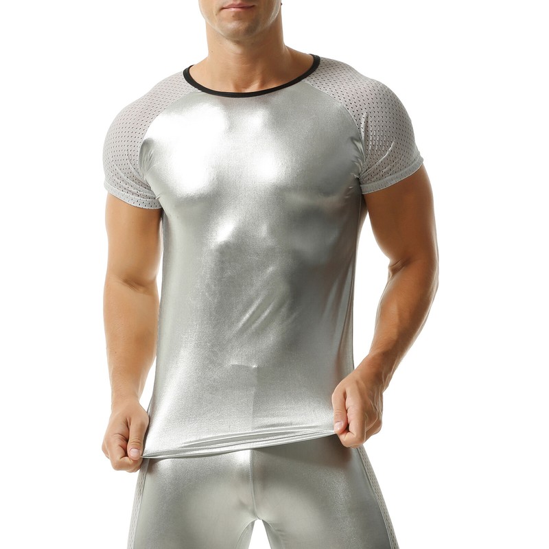 Mens Glossy U Neck Tank Tops Solid Color Sleeveless Crop Top Vest.