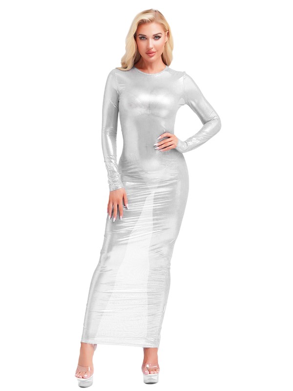 This plain color slim fit dress with shiny surface brings dazzling and unique luster to make you stunning.
