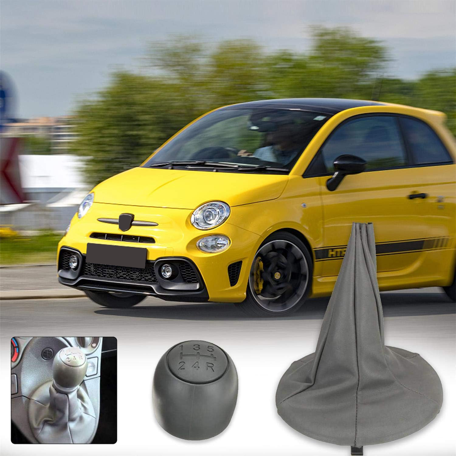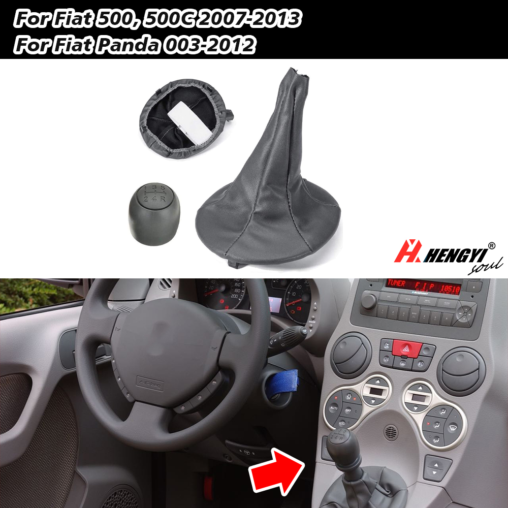 Shift Lever Knob + Shifter Boot For Fiat 500, 500C 2007-2013, Panda 003-2012